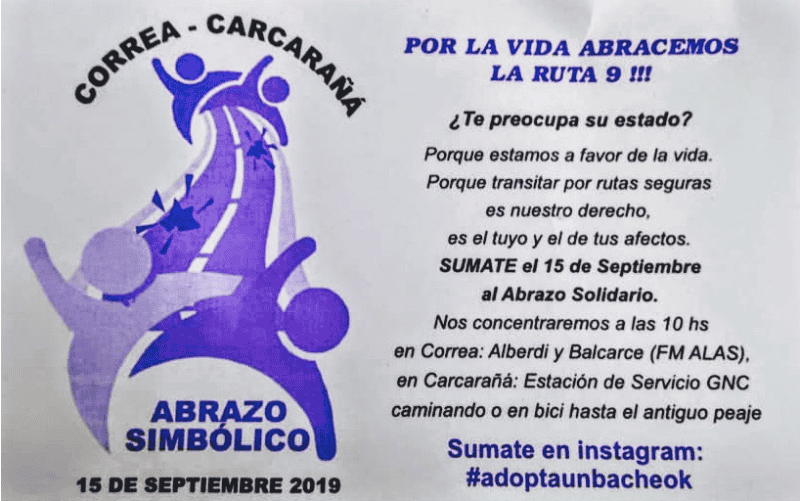 "Porque estamos a favor de la vida. Porque transitar por rutas seguras es nuestro derecho", dice la invitación que forma parte de una campaña particular por las redes: #adoptaunbacheok.