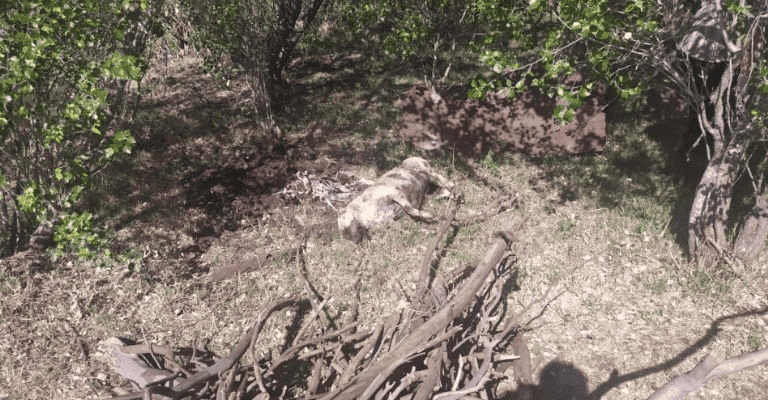 Solo dos de los perros permanecían con vida y fueron retirados del lugar por personal de Bromatología. Ambos tenían en sus pelajes manchas rojizas que se presume serían sangre de la víctima.