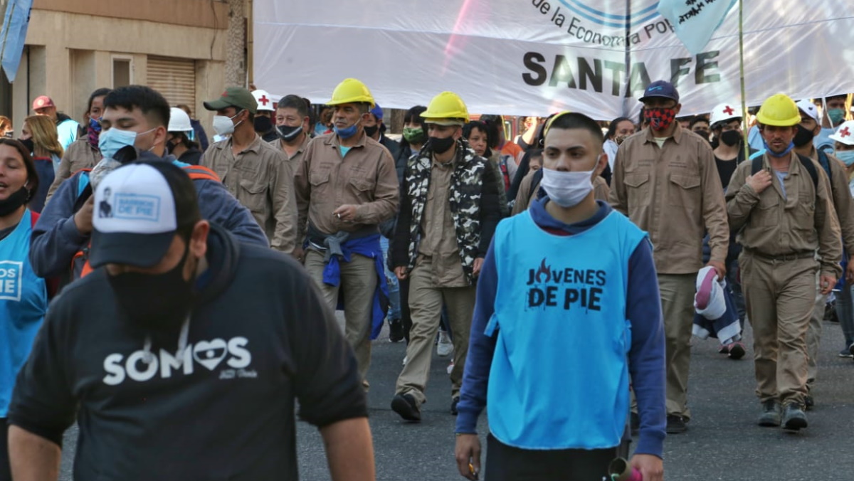 Organizaciones sociales – UTEP, Corriente Clasista y Combativa (CCC), Mov. Evita, Movimiento de Trabajadores Excluídos (MTE), Barrios de Pie, Mov. Popular Libertador San Martín, Pueblos Originarios en Lucha. Nuestramérica. Paritaria Social y Popular, Sindicato de Cadetes, Sindicato de Aceiteros de Rosario–marcharon hacia el Monumento a la Bandera para exigir un salario básico universal. Pasaron cerca de la parroquia donde recibieron una bendición. También, se llevaron adelante 34 cortes en el Gran Rosario, hasta pasado el mediodía. Hay que destacar que el realizado en Presidente Perón y Circunvalación fue total.