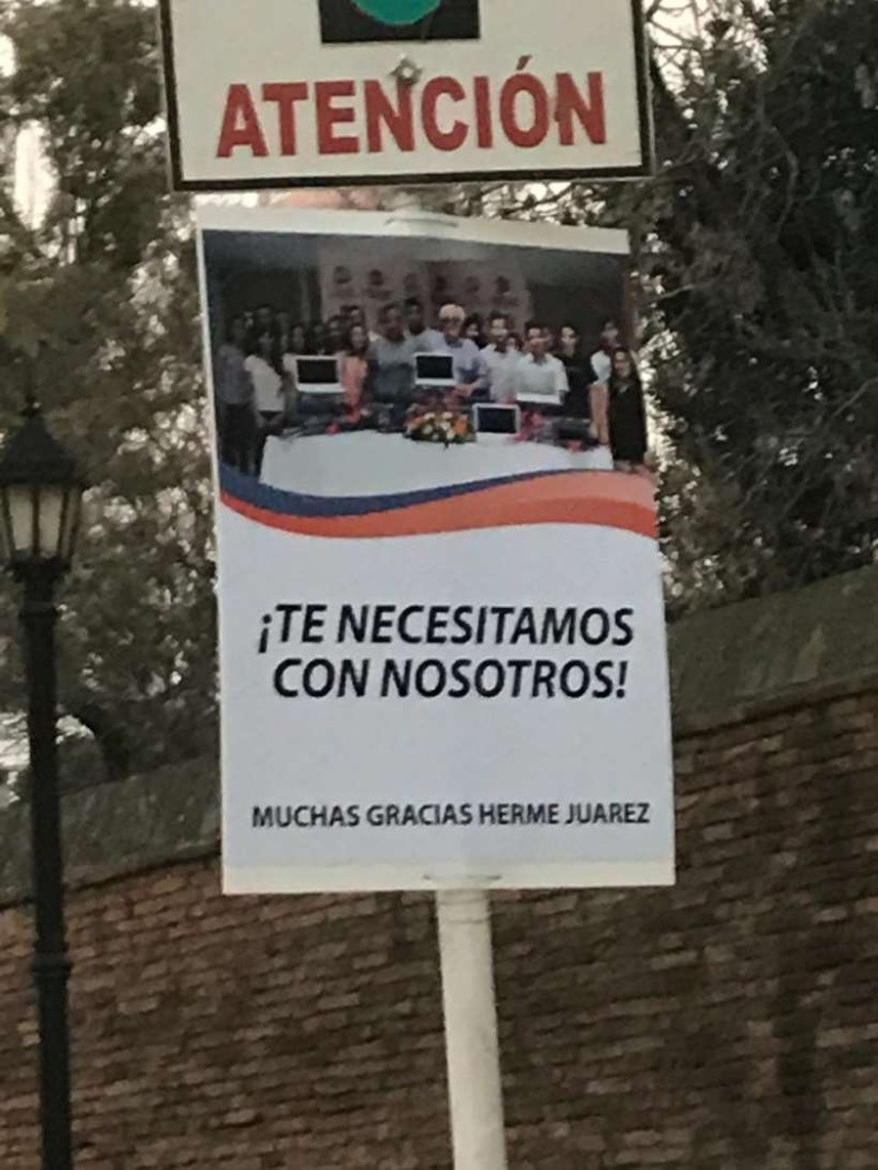 “¡Te necesitamos con nosotros!”. “¡Orgullosos del trabajo que nos das!”. “¡No vamos a parar hasta tenerte con nosotros!”. Esto se lee desde este miércoles en las calles de San Lorenzo. Los carteles, en formato columnero, como los típicos de campañas electorales, llevan todos fotos del sindicalista detenido, y la frase “Muchas gracias Herme Juárez”.