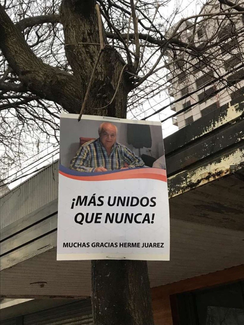 La ciudad de San Lorenzo amaneció este miércoles empapelada con carteles de apoyo al histórico sindicalista portuario Herme “Vino caliente” Juárez, quien fue procesado este martes junto a su hijo, Oscar Juárez, por el juez federal de Campana, Adrián González Charvay. Sospechan que padre e hijo integraron una asociación ilícita y les ordenaron un embargo por 500 millones de pesos.