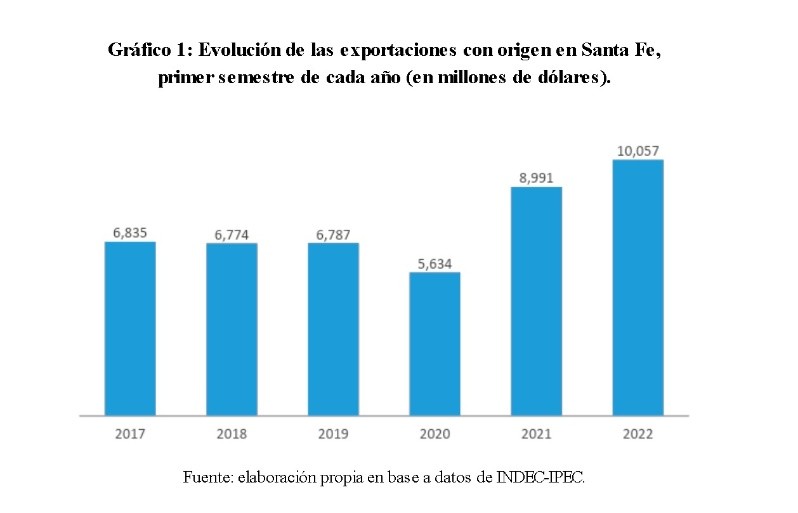 El valor de las exportaciones con origen en la provincia de Santa Fe durante el período enero-junio del año 2022 alcanzó a 10.057 millones de dólares, el más alto de la serie histórica. El monto representa, además, el 22,7% del total exportado por la Argentina.