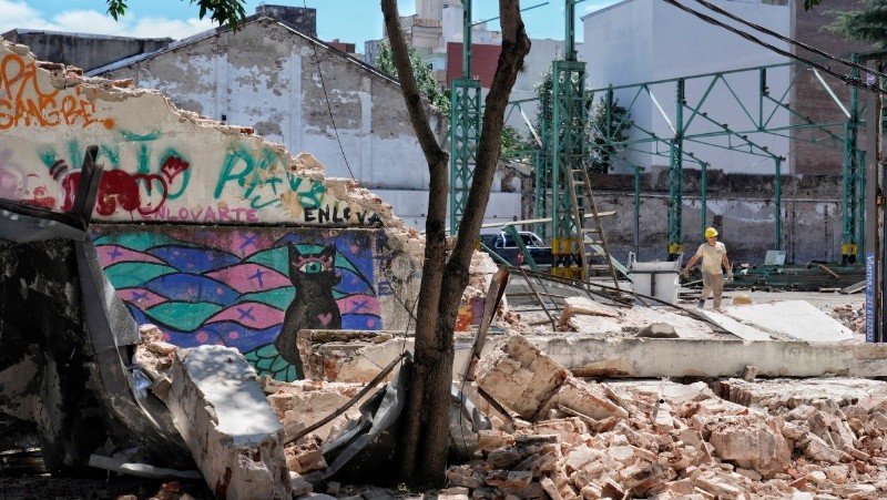 El inmueble donde ocurrió el desmoronamiento fue sede de OCA. Se trata de un predio de 4.700 m2 donde se levantan viviendas en altura (PB y 8 pisos) con un rasgo distintivo porque es poco común en el centro: un jardín central de 2.500 m. Por los dos frentes, habrá comercios a la calle.