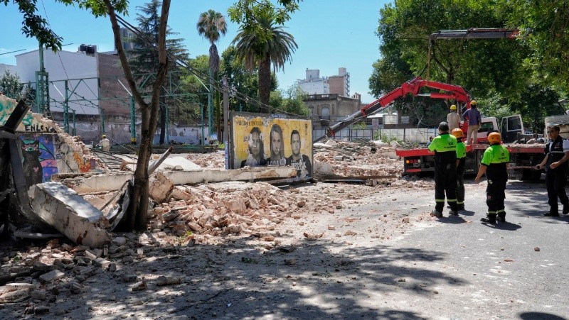 El tránsito estaba cortado por calle Tucumán debido a la presencia de cascotes.