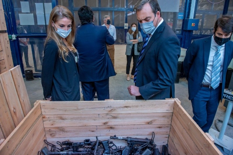 El ministro @MartinSoria_ participó junto a @robertosukerman, ministro de @MinGobiernoSF de la inutilización del primer lote de 5.000 armas de fuego secuestradas por la justicia de Santa Fe, efectuado en las instalaciones del Banco Nacional de Materiales Controlados (BANMaC). pic.twitter.com/fNmUP5tT0l