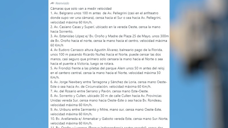 El coordinador General del gabinete Municipal Rogelio Biazzi aclaró este jueves que “no es oficial” el listado de ubicaciones de las cámaras de fotomultas en distintos puntos de Rosario que se viralizó a través de Whatsapp.