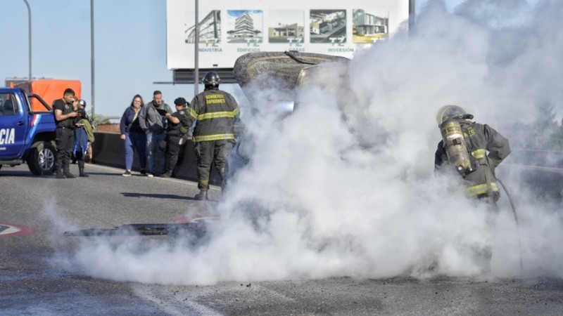 Los bomberos lograron apagar el incendio y también intervino la Policía. En tanto que el tránsito sobre la mano que ingresa a la ciudad permanecía reducido mientras se trabajaba para retirar el auto y liberar la calzada.