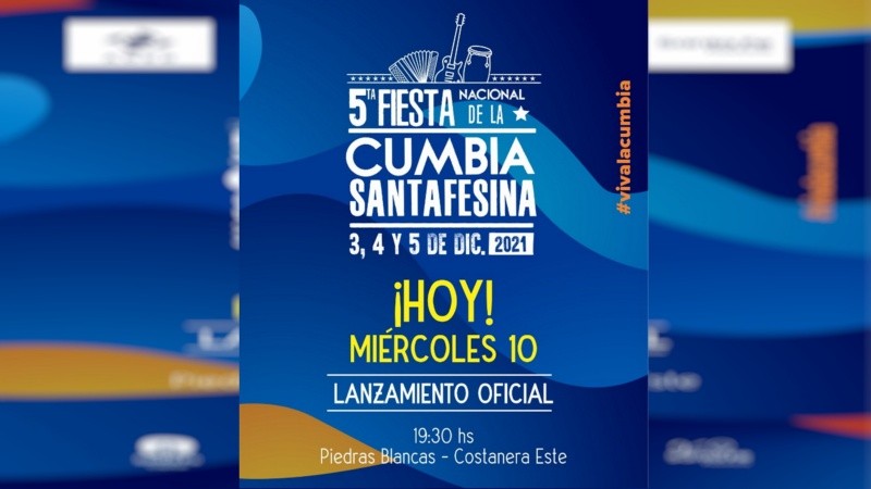 Este miércoles, desde las 19.30, se lanza la 5ta. Fiesta Nacional de la Cumbia Santafesina. Será en el complejo Piedras Blancas, ubicado en la Costanera Este de la ciudad de Santa Fe.