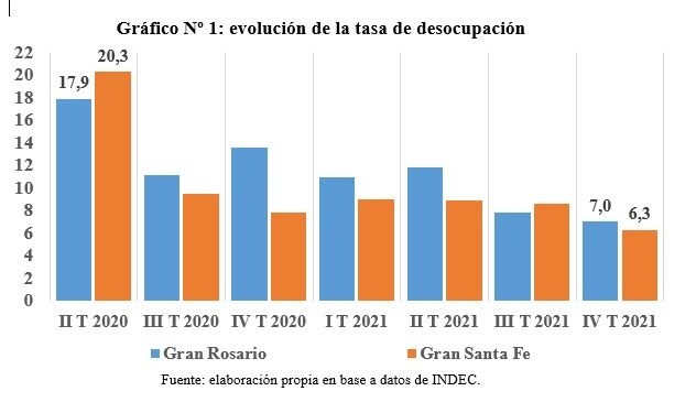 El mismo informe indicó que a nivel nacional el índice de desocupación bajó al 7% al término del cuarto trimestre del año pasado, 4 puntos porcentuales por debajo del 11% registrado al cierre de 2020, informó hoy el Instituto Nacional de Estadística y Censos (Indec).