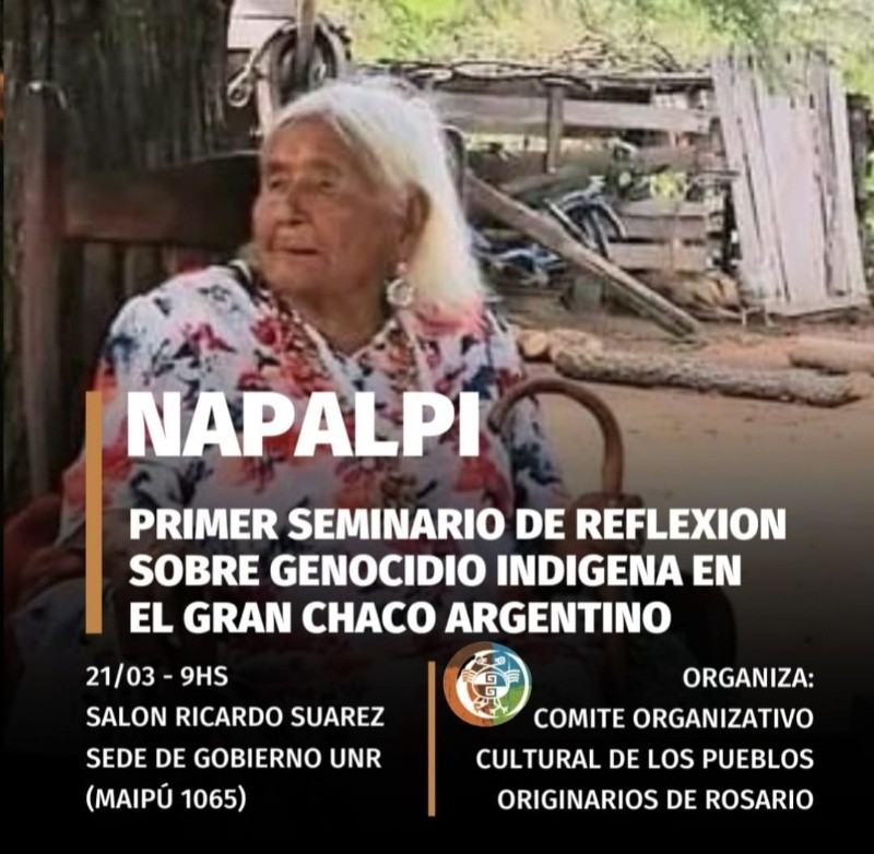 El jueves 21 de marzo a las 9 se desarrollará el “Seminario de Reflexión sobre el Genocidio Indígena en el Chaco Argentino”, en Maipú 1065 (sede de la UNR), organizado por el Comité Cultural de los Pueblos Originarios.