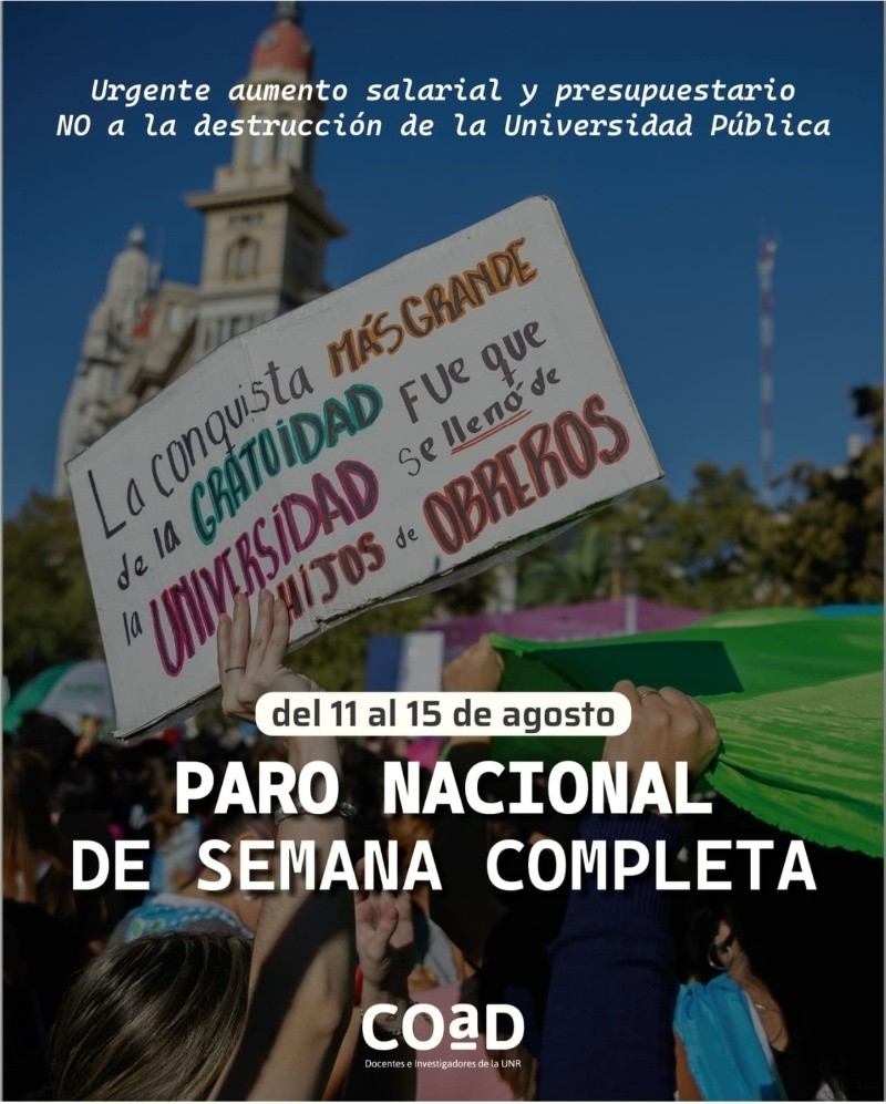 Los docentes de la UNR nucleados en Coad anunciaron una medida de fuerza de cuatro días para visibilizar la difícil situación salarial que atraviesan ante la caída de sus ingresos.