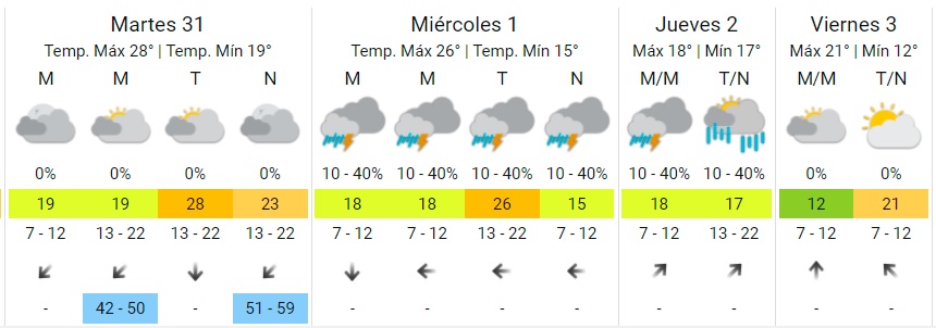 Recordó que la tradicional tormenta de Santa Rosa “suele tener ráfagas, chaparrones de cortos períodos y también puede haber granizo”, aunque también se destaca lo que dejará después: “Un descenso de temperatura, con el viento rotando al sur-sudeste” para el resto de la semana.