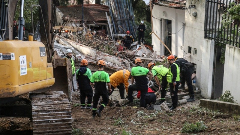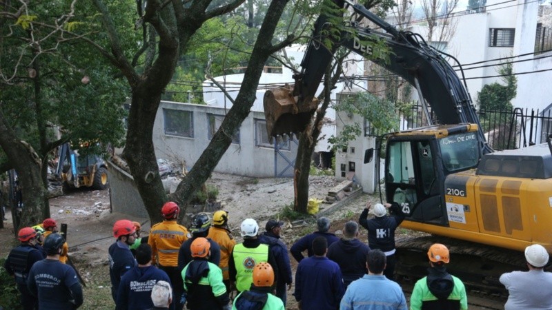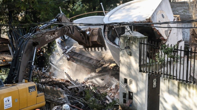 Lastorta había explicado que seguir avanzando sobre la estructura podía poner en riesgo a los rescatistas y por eso pasadas las 10 de la mañana se tomó la decisión de tumbar con maquinaria pesada lo que quedaba de la casa de tres plantas y el paredón que daba a calle Superí.