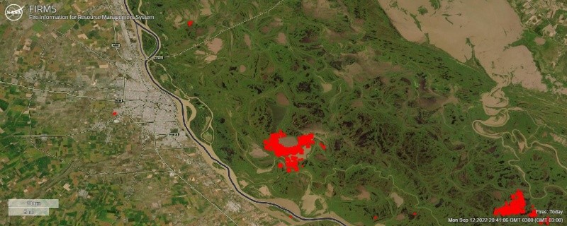 Este lunes por la noche, una recorrida del equipo periodístico del programa Telenoche Rosario (El Tres) encontró que un gran foco activo y a la vista desde Pellegrini y avenida Belgrano. Con estas llamas avanzando en las islas, el viento desde el este – noreste anunciado para este martes podría mantener las mismas condiciones al menos otra jornada más.