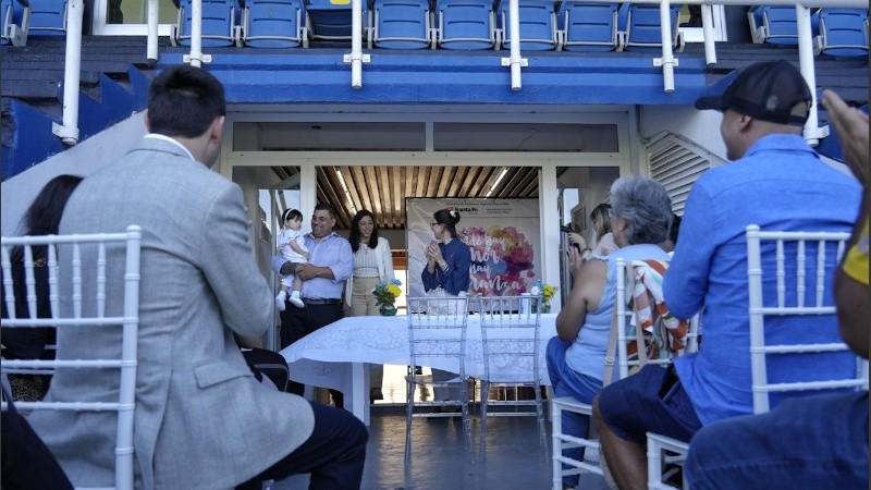 La primera pareja que dio el "Sí" estaba exultante. En diálogo con Cada Día (El Tres), Pato, el novio y también empleado del club, expresó sobre el enlace: "Esto es único para nosotros, lo recomiendo a todos los canallas, es un momento histórico". Su flamante esposa sonreí a su lado y a upa estaba María, la beba que tuvieron juntos.