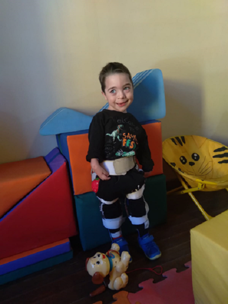 "Tuvimos que comprar varios elementos de ortopedia", agrega, los cuales ayudan a su hijo a mantenerse parado y tener movimiento en sus piernas.