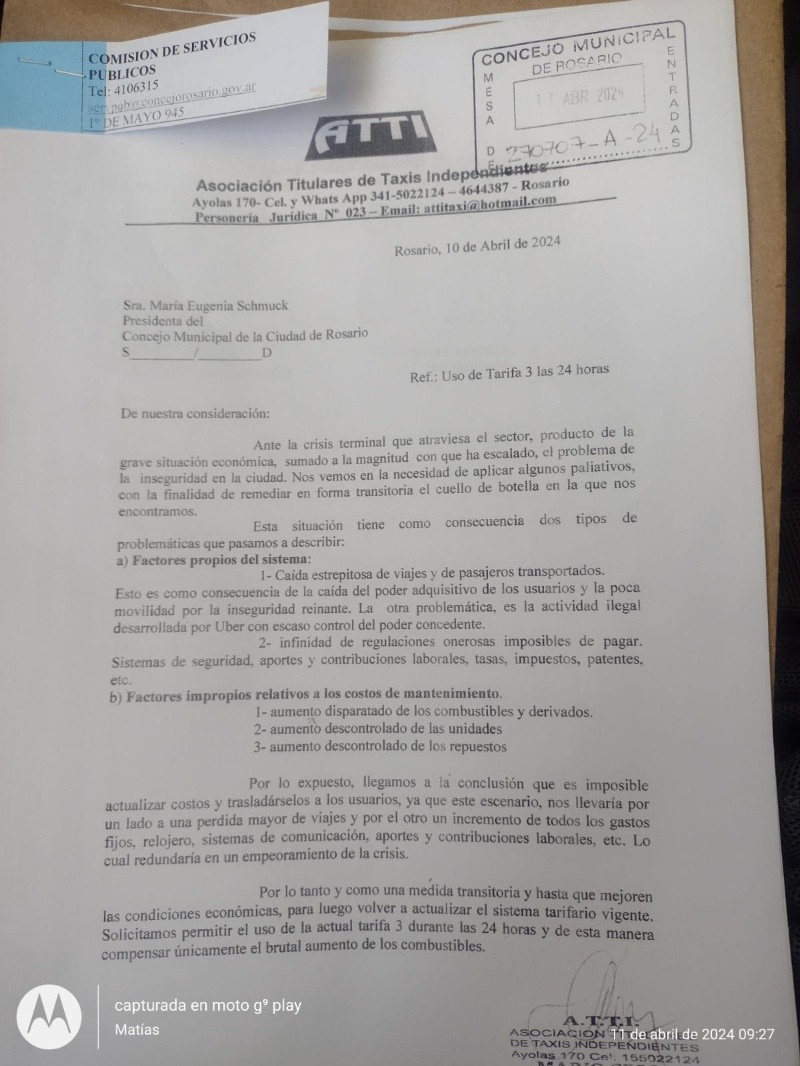 Los titulares de licencias de taxi de Rosario aseguran que la situación que atraviesa el sector es terminal. En medio de la caída de viajes, que le atribuyen a la crisis económica, la proliferación de remises ilegales y la inseguridad, presentaron un pedido al Concejo para unificar el valor de las tarifas.