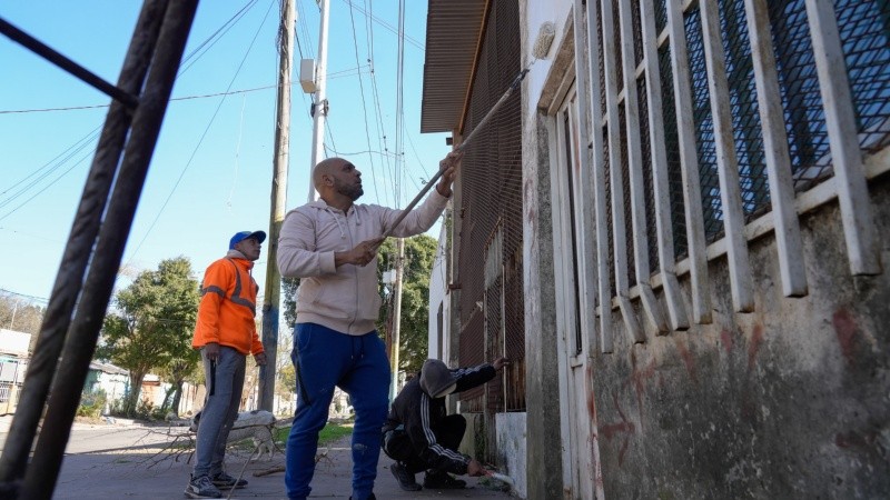 Cruzan la calle con Jonathan, de 27, y empiezan a pintar la segunda casa del turno mañana. “Esto es un golazo porque hay poca changa, mucha malaria”, diagnostica. Otro grupo trabaja a la tarde.