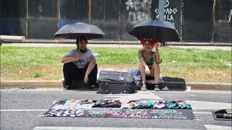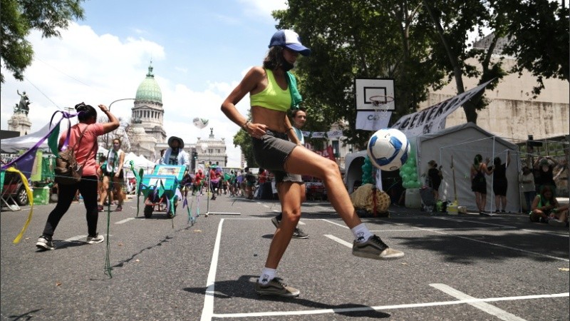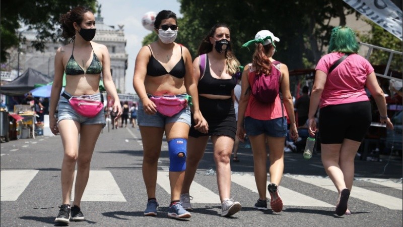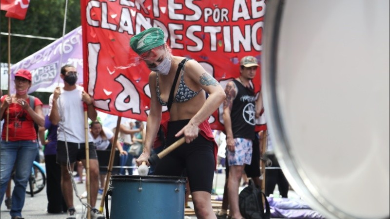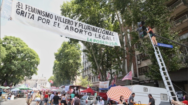 El sector identificado con el color verde, de las mujeres que defienden la despenalización y legalización del aborto, se habían instalado en el centro porteño con sus consignas, sus banderas y su música.