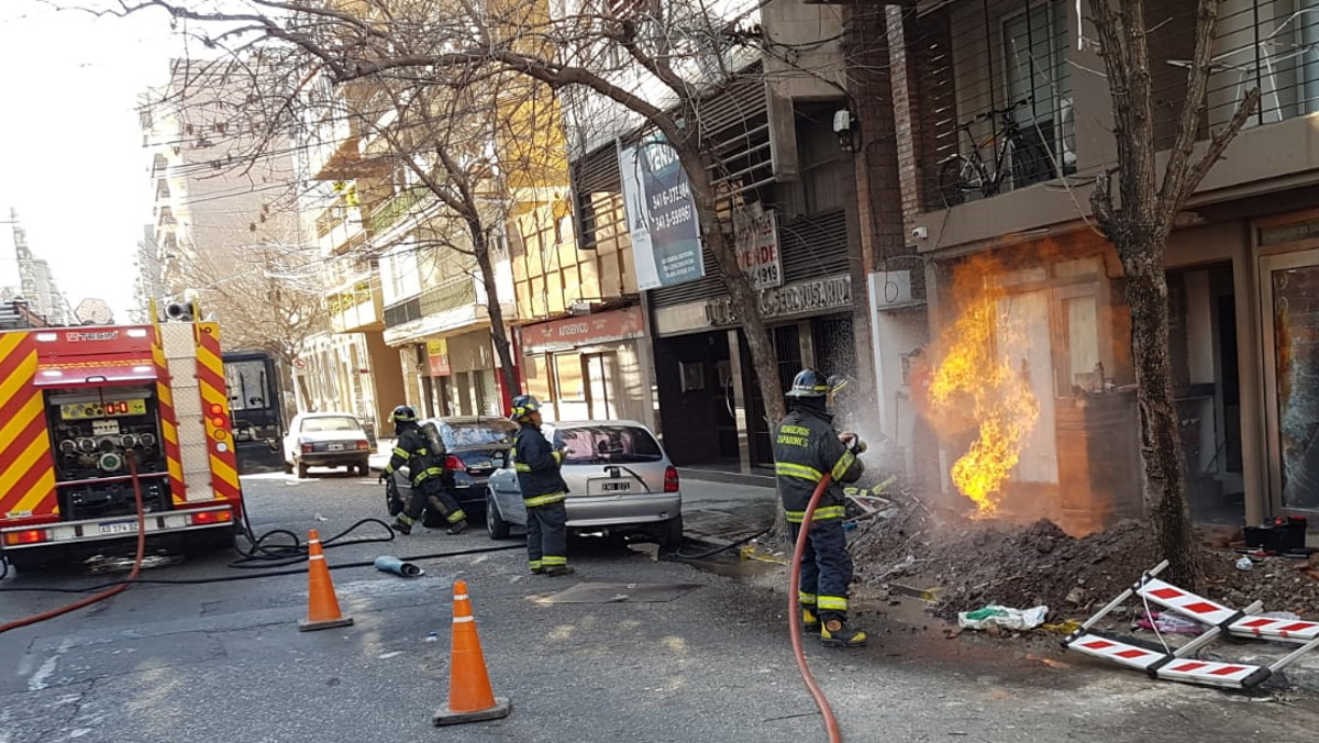 El hecho ocurrió cerca de las 14 y las cuadrillas demoraron más de dos horas en controlar la situación. Recién cerca de las 16.15 lograron obstruir el caño, extinguir el foco ígneo y tres dotaciones de bomberos trabajaban en la zona para enfriar el edificio y la vereda.
