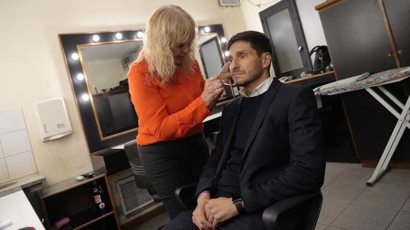 El último en maquillarse fue Maximiliano Pullaro. Rígido y concentrado, con ese aire imperturbable que evidencia en las publicidades, aprovechó la instancia para averiguar sobre el clima en el estudio. “Soy muy friolento”, contó, aunque finalmente, optó por quitarse el pullover y lucir una camisa blanca debajo del traje. A pesar de que los votos le son favorables y si se repite su performance en las elecciones generales, el domingo próximo podría convertirse en el nuevo gobernador de Santa Fe, consideró que no es bueno asumir ningún escenario, es decir, no "cancherearla", incluso en un debate televisivo. “Recen por mí”, fue su saludo.