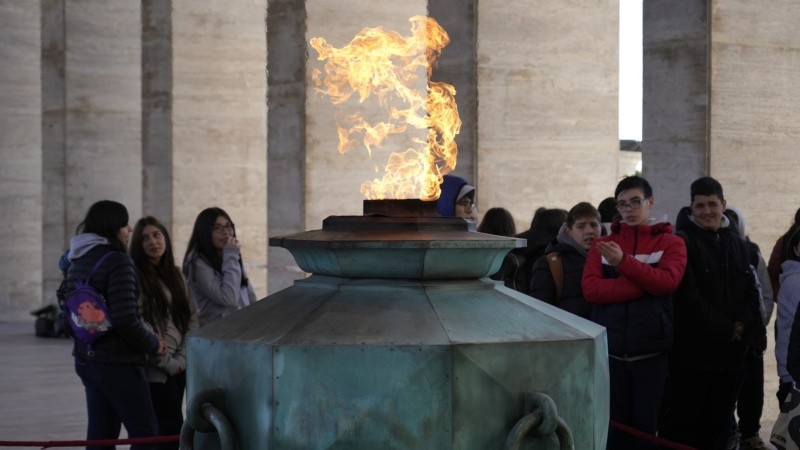 La llama votiva en el centro del Propileo del Monumento a la Bandera volvió a arder tras dos años de estar apagada. Había sido extinguida en 2023 en el marco de las obras de restauración. Desde el lunes pasado, se puede ver, nuevamente, encendida.