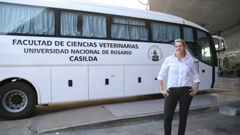 Este viernes, con el sol de las 17.00 en punto, el colectivo blanco reluciente, con sus laterales ploteados en letra mayúscula y de color negro: “Facultad de ciencias veterinarias, Universidad Nacional de Rosario. Casilda”, ingresó a la plataforma cuatro de la Terminal de Ómnibus Mariano Moreno de Rosario. Desde lejos pudo verse la sonrisa de Romina conduciendo.