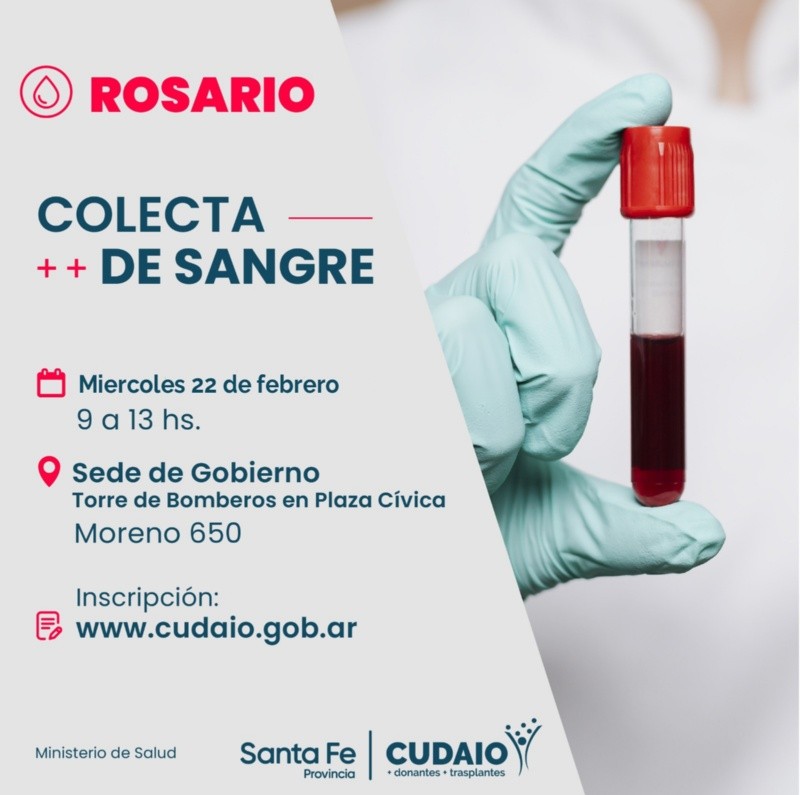 Este miércoles 22 se realizará la última colecta de sangre de febrero por parte del Cudaio en Rosario y quienes puedan y deseen hacerlo, deben llenar un formulario a través del cual se otorga un turno.