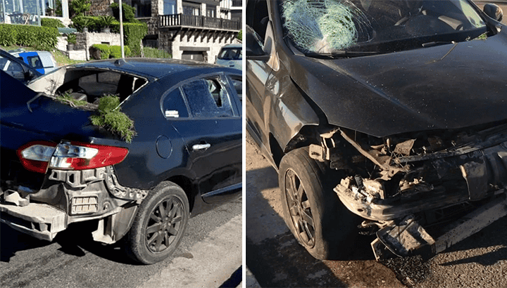 El parabrisas, en tanto, quedó totalmente roto al igual que varios de los demás vidrios. Asimismo, el guardabarros trasero también quedó desprendido y los neumáticos destrozados.