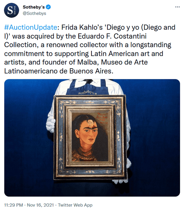 Costantini cuatriplicó el anterior máximo histórico de la propia pintora mexicana de ocho millones de dólares logrado en 2016, y con esta adquisición se convirtió en el propietario de las dos obras de arte más caras de la región.