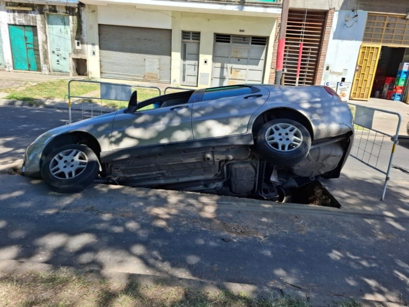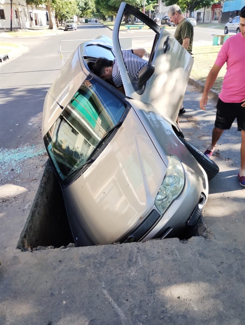 Por las dimensiones del pozo, unos 2 metros de largo por 4 de ancho, y su ubicación prácticamente en el medio de la calzada, el espacio para circular era mínimo y sobre el sector donde estacionan los autos. Pese a eso, según explicó el conductor, había apenas un vallado sobre el pozo y, cuando quiso pasarlo por el carril izquierdo, terminó cayendo con la rueda delantera y trasera del lado derecho.