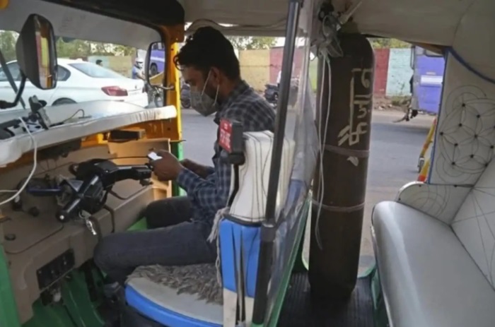 Mohammad vive en la ciudad de Bhopal, y las imágenes de personas llevando en brazos a sus seres queridos hasta un hospital para que recibieran atención médica lo incentivó a vender las pocas alhajas que tenía su esposa para convertir su tuk-tuk en una pequeña ambulancia, equipada con un tubo de oxígeno, un oxímetro y otros instrumentos médicos.