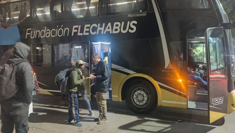 El micro, un gigante de dos pisos con 27 asientos coche cama, calefacción y disponibilidad de agua, café y alfajores, los espera estacionado por calle Córdoba, en pleno Paseo del Siglo. Conducido por Diego, partió cerca de las 22 de la explanada del museo Castagnino para darle comienzo a la primera jornada –el jueves anterior se concretó una experiencia piloto de modo satisfactorio– de la iniciativa impulsada por la empresa Flechabus, en coordinación con la Municipalidad de Rosario y las organizaciones sociales Refugio Sol de Noche y Rosario Solidaria con vasta experiencia en la atención de personas en situación de calle en la ciudad. La idea es salir dos veces a la semana hasta agosto, sumando plazas a las dispuestas por el Estado local en los refugios y así evitar que la gente se exponga a una hipotermia.