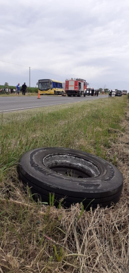 Como consecuencia de este desperfecto, un camión que circulaba en sentido contrario perdió el control y terminó impactando contra el lateral de un colectivo de la línea 33/9 que hacía el recorrido de Casilda - Rosario.