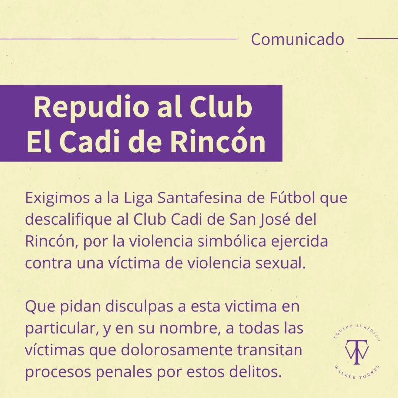 El pasado sábado 10 de septiembre, el Club El Cadi de Rincón disputó como local un partido correspondiente al torneo de Primera B de la Liga Santafesina de Fútbol (LSF). Al salir a la cancha, el plantel exhibió una bandera con la polémica consigna: “Ni Uno Menos”. El hecho generó repudios porque la bandera fue en defensa de un acusado por el abuso sexual de su sobrina, quien se encuentra en prisión preventiva.