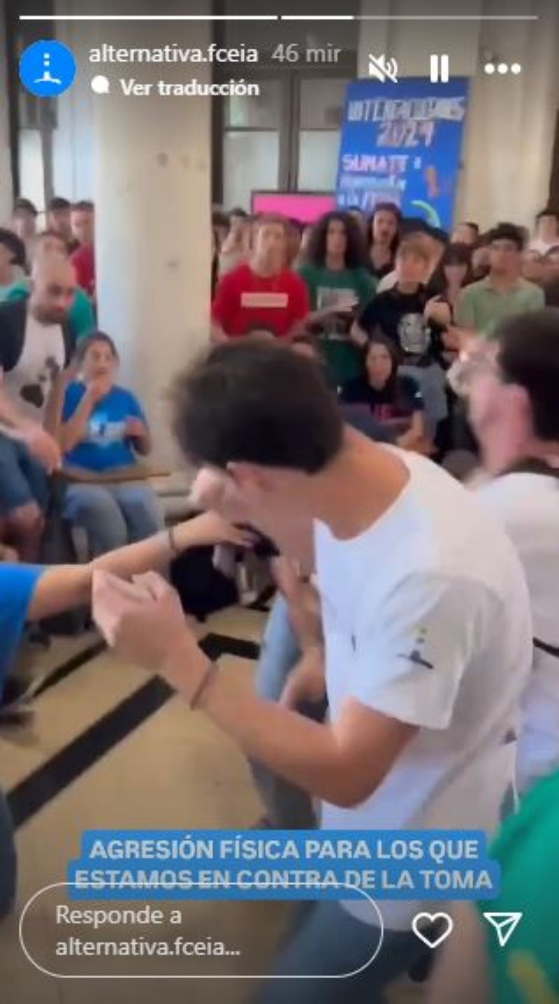 Todo ocurrió en medio de una asamblea "interclaustro" donde distintas agrupaciones expusieron sus posturas respecto de los recortes presupuestarios que impuso el gobierno nacional, donde se evaluó una posible “toma” de la facultad de Ingeniería, que a diferencia de otras dependencias de la UNR no se encuentra tomada.