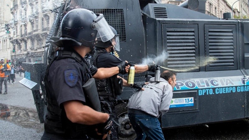 Según constató la Agencia Noticias Argentinas, el gas pimienta en cuestión es similar al empleado por la Policía Federal y la Policía de la Ciudad durante los enfrentamientos con manifestantes en las inmediaciones del Congreso.