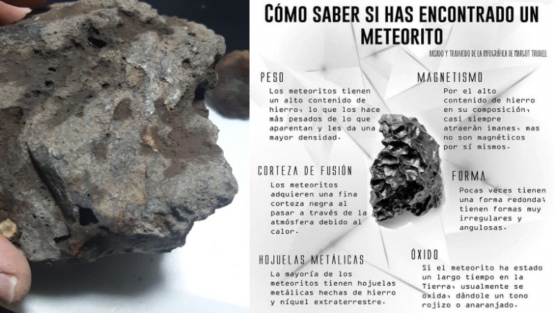 Una roca con particularidades especiales fue encontrada en Soldini, localidad cercana a Rosario. El elemento fue hallado gracias a un detector de metales, lo que hizo suponer a quienes lo hallaron de era más que una simple piedra. La primera impresión: un meteorito.