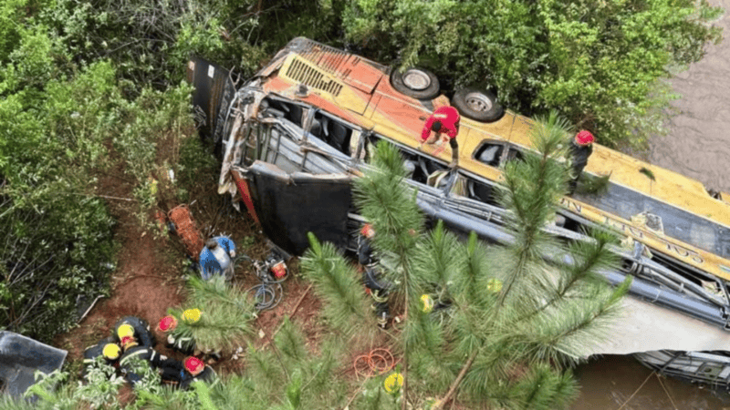 Durante la madrugada de este domingo, un colectivo que llevaba alrededor de 50 pasajeros desde Oberá - Misiones - chocó con un auto y terminó cayendo del puente sobre el arroyo Yasá en Campo Viera. El accidente provocó al menos nueve muertos y más de 20 heridos.