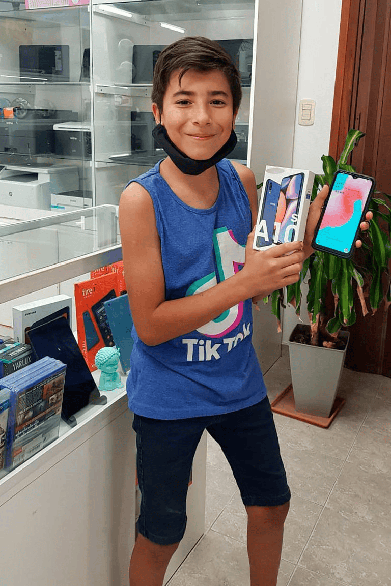 Joaquín deseaba un celular desde que salió a la venta, pero tras los problemas económicos por la pandemia, decidió juntar la plata y comprárselo él mismo. El futuro especialista en electromecánica -según es su deseo- contó a Infobae: “Fue muy lindo comprarlo. Tuve una satisfacción enorme y el corazón me iba a mil... ¡Te juro que no dejo de sonreír desde que salí de casa!”.