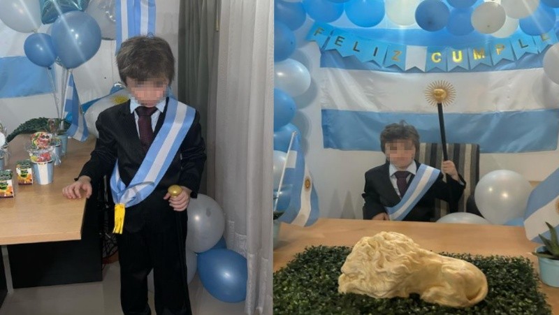 Gisela, su mamá, contó que la iniciativa fue del cumpleañero: “No quería Milei en una figurita, quería ser el mismo Milei, fue todo muy cómico”, señaló. “Se hizo la fiesta en casa, no en un salón por toda la situación que estamos pasando”, advirtió en relación con la crisis económica.