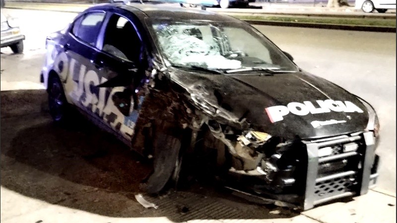 Según los primeros datos que trascendieron, el auto oficial impactó con tanta fuerza contra el Astra que lo impulsó contra un árbol y, además, lo estrelló contra un rastrojero que estaba también estacionado en el lugar.