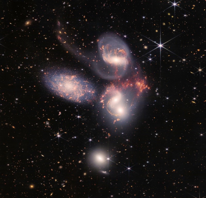 "La imagen del Quinteto de Stephan revela una especie de danza cósmica impulsada por la fuerza gravitacional, el tipo de interacción que impulsa la evolución de las galaxias", explicó durante su presentación la científica de datos Giovanna Giardino.