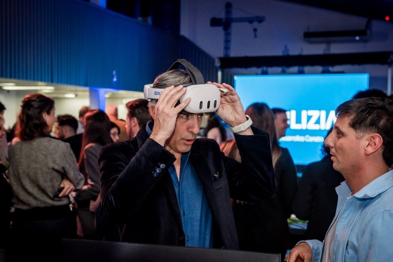 Durante el evento, la innovación fue una experiencia en sí misma. Los invitados pudieron interactuar con distintos recursos tecnológicos: desde recorridos virtuales con visores inmersivos y maquetas digitales que mostraban instalaciones ocultas, hasta la presencia de Roju, su perro robot, y una pantalla interactiva que permitió explorar en detalle la planta de Capua. Cada espacio transmitía el mismo espíritu que distingue a Edilizia: combinar construcción y tecnología para proyectar el futuro.