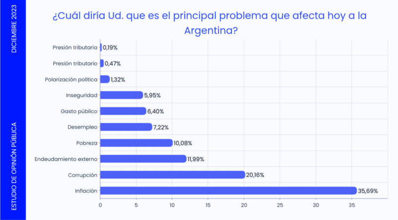El estudio online relevó la opinión de 1.096 personas, de todo el país, entre el 30 de noviembre al 11 de diciembre de 2023. Las respuestas se consignaron antes de que se conocieran las primeras medidas económicas que anunció el ministro Luis "Toto" Caputo a instancias del presidente.