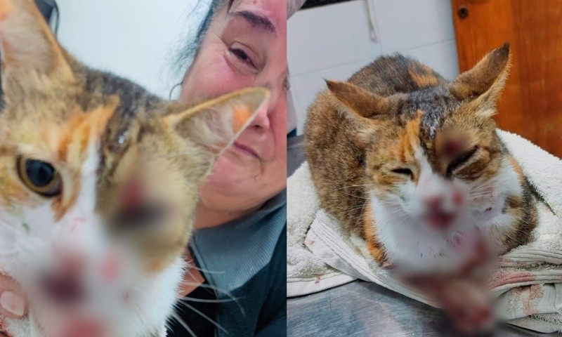 Según relató la mujer, el jueves pasado, el animal apareció en el patio herido: “Era toda sangre, le salía por el ojo, la boca, la nariy y el oído”, detalló. La familia rápidamente llevó a la gata a un consultorio veterinario donde le hicieron las primeras curaciones y fue derivada a otro consultorio en el que le practicaron una radiografía.