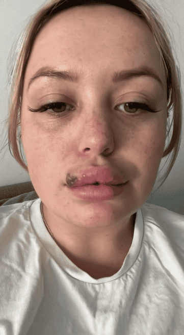 Cuando Sophie Heaslip, de 25 años, llegó a su casa de Brentford, Londres, una hora después de la cirugía, notó que le había brotado una ampolla negra en el lado derecho de la boca junto con bultos más pequeños. Al enviarle fotos a su médico, el profesional solo le recomendó que vigilara la hinchazón, que podría deberse a una reacción alérgica normal.