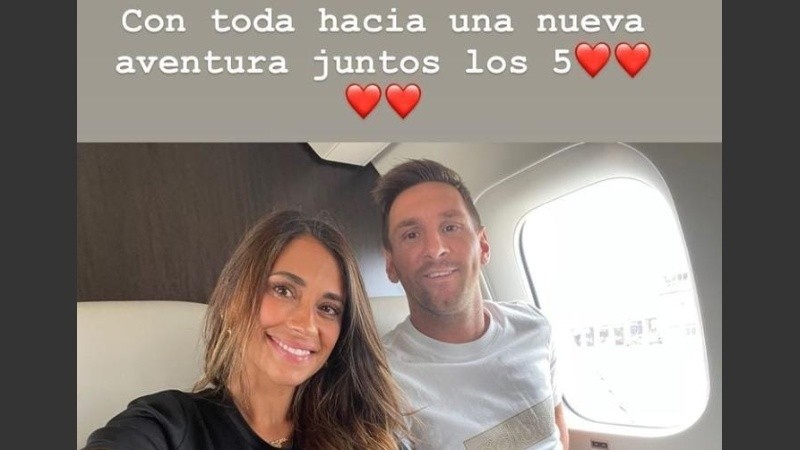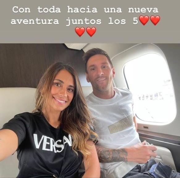 Lionel Messi y su familia viaja este martes desde Barcelona hacia París para firmar su nuevo contrato con el PSG. Su mujer, Antonela Rocuzzo, subió una historia en Instagram: "Con toda hacia una nueva aventura, juntos los cinco", expresó la rosarina.