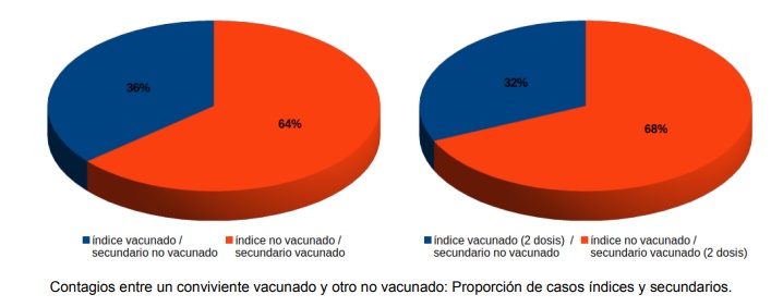 Además, del informe se desprende que “las vacunas resultan más efectivas para evitar contagios a convivientes que para evitar contagiarse de un conviviente infectado no vacunado”.