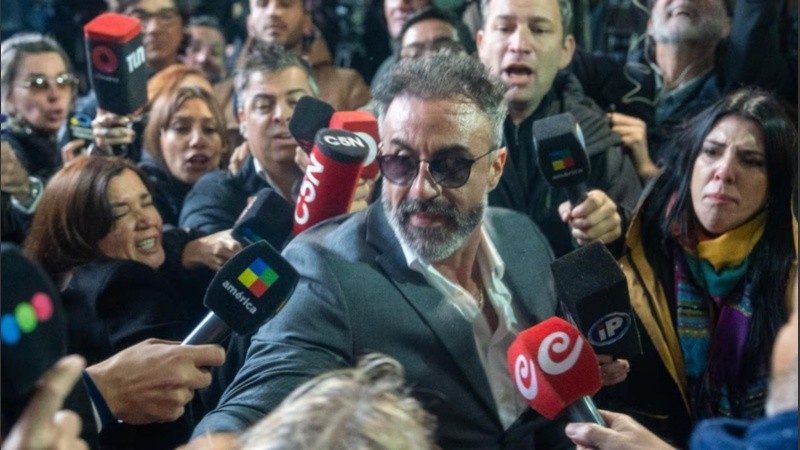 En medio del tumulto de gente por la cobertura de la prensa, un grupo de personas que estaba en el ingreso de los tribunales, interceptó al neurocirujano y lo golpeó en la cabeza con una bandera de Argentina.